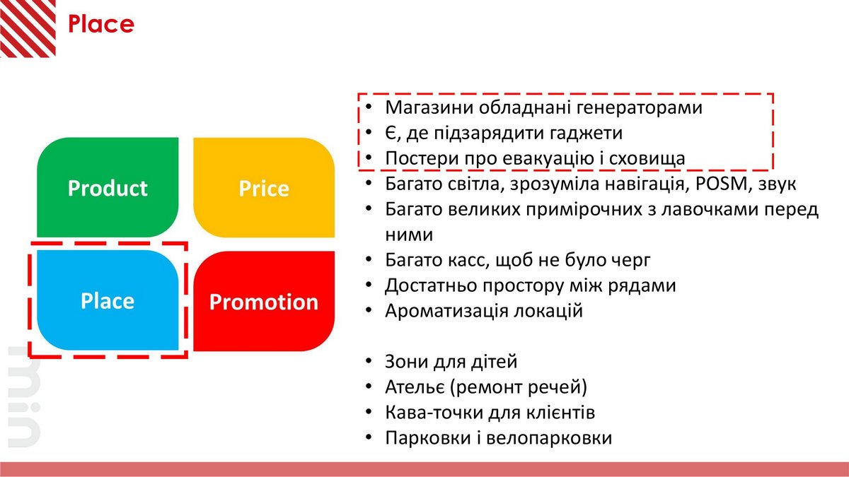 Поэтому в компании работают со всем маркетинговым миксом так называемых «четырех P»: Product, Place, Price, Promotion. Однако, учитывая определенные нюансы, которые отображены на рисунке ниже.