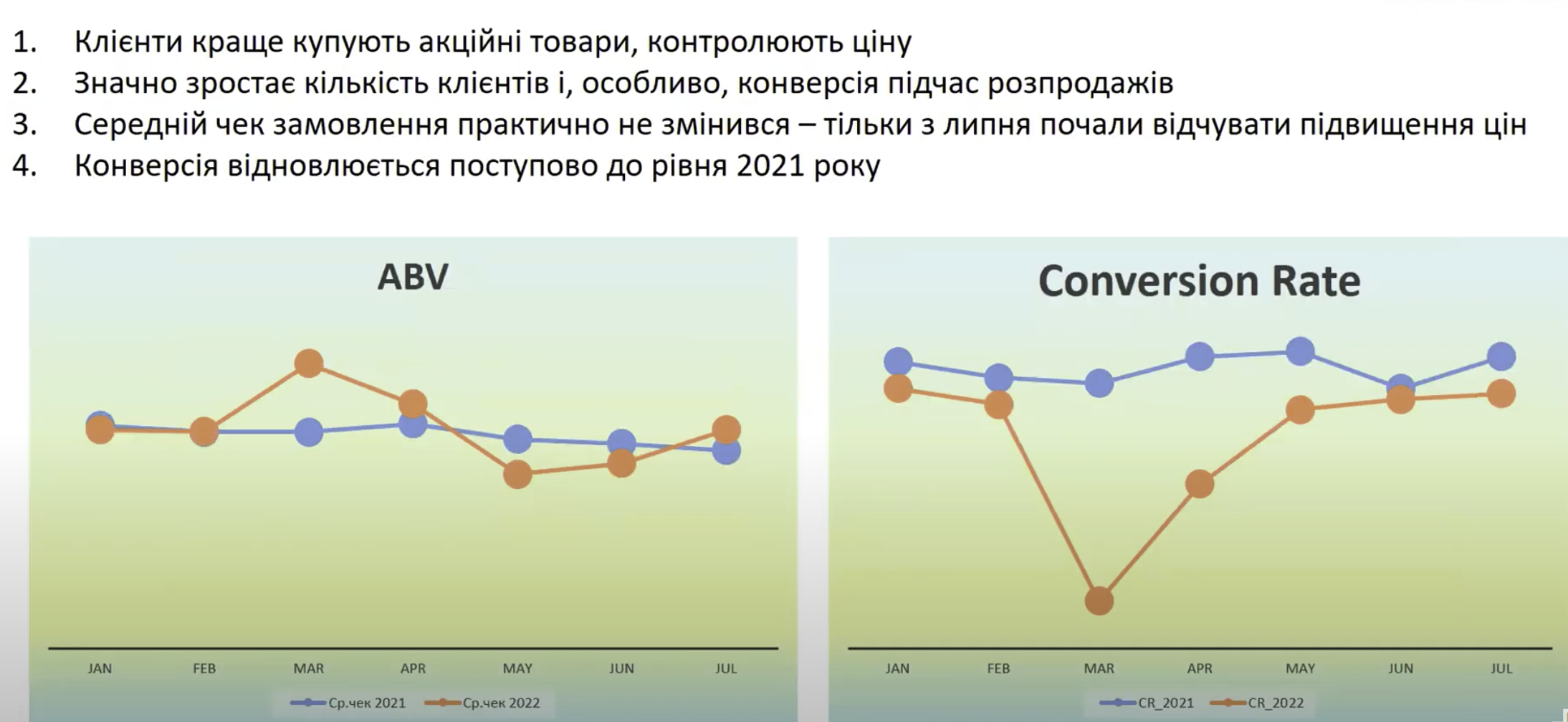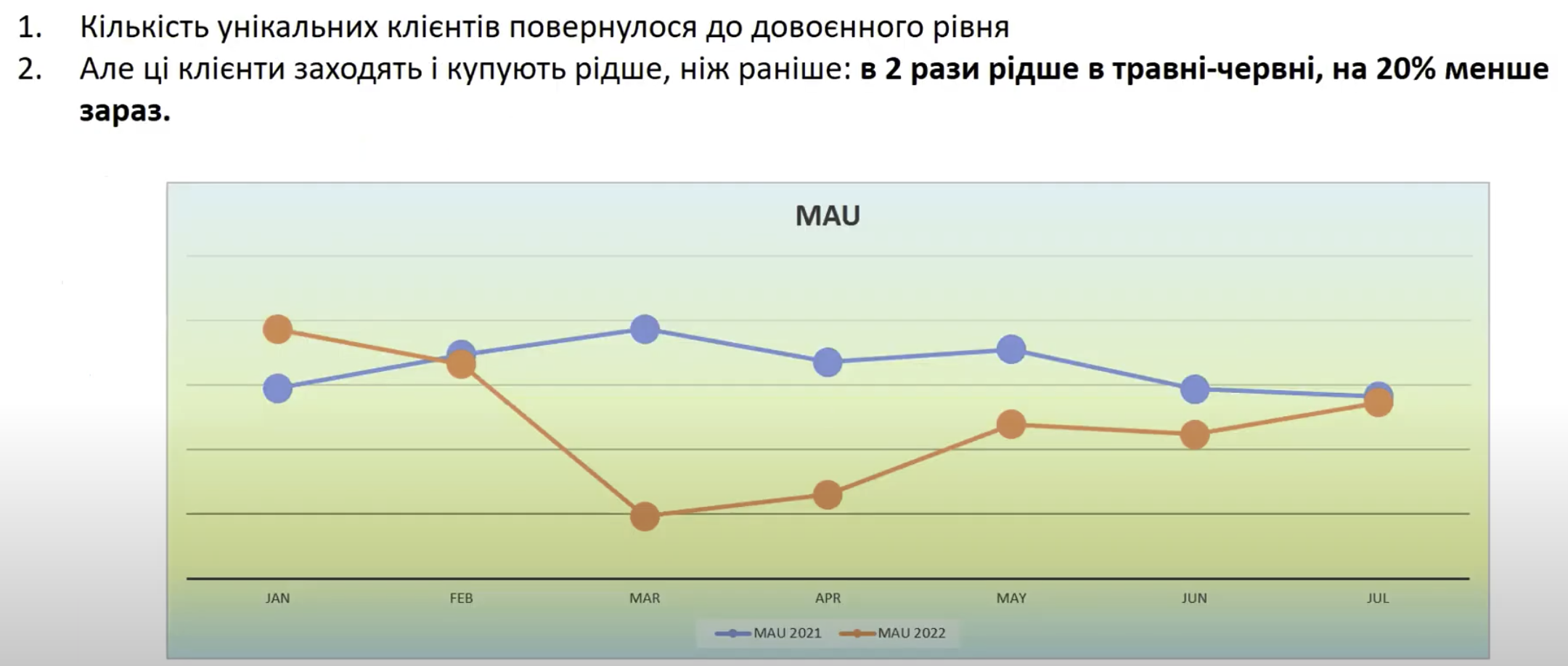 По числу уникальных клиентов мы практически вышли на довоенные показатели. Если же говорить о трафике, то клиенты приходят реже и покупают меньше, чем раньше. На это есть несколько причин, основные из которых – снижение покупательной способности и изменение имеющегося ассортимента маркетплейса.