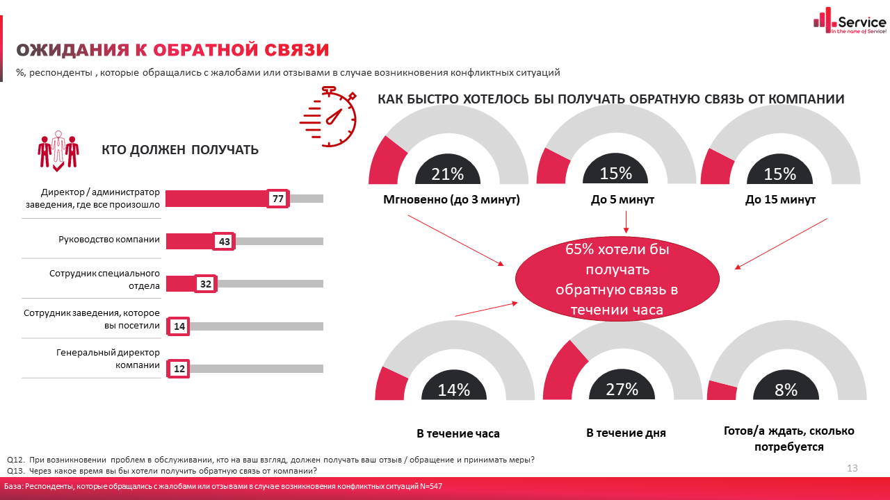 Исследование показало, насколько ценна быстрая реакция компании на отзывы: потребитель хочет как можно скорее получить реакцию на обращение и увидеть положительные изменения, произошедшие благодаря его вмешательству.