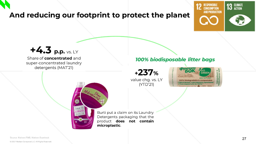 Ответом на растущий тренд беспокойства потребителей об окружающей среде стало появление на полках магазинов все большего количества продуктов, которые помогают сократить потребление пластика. Например, концентрированных и суперконцентрированых средств для стирки и биоразлагаемых пакетов.