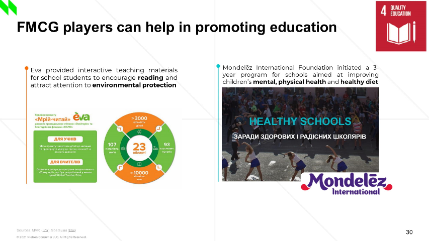 Образование, направленное на улучшение физического и ментального здоровья школьников, и качества их питания – еще одно направление для развития игроков FMCG рынка.