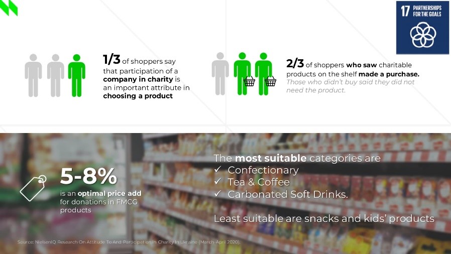 5-7% наценки на товары с целью благотворительности – оптимально для украинских покупателей. В итоге, чтобы обеспечить устойчивый рост бизнеса в текущих реалиях быстро меняющегося FMCG-рынка, игрокам стоит: