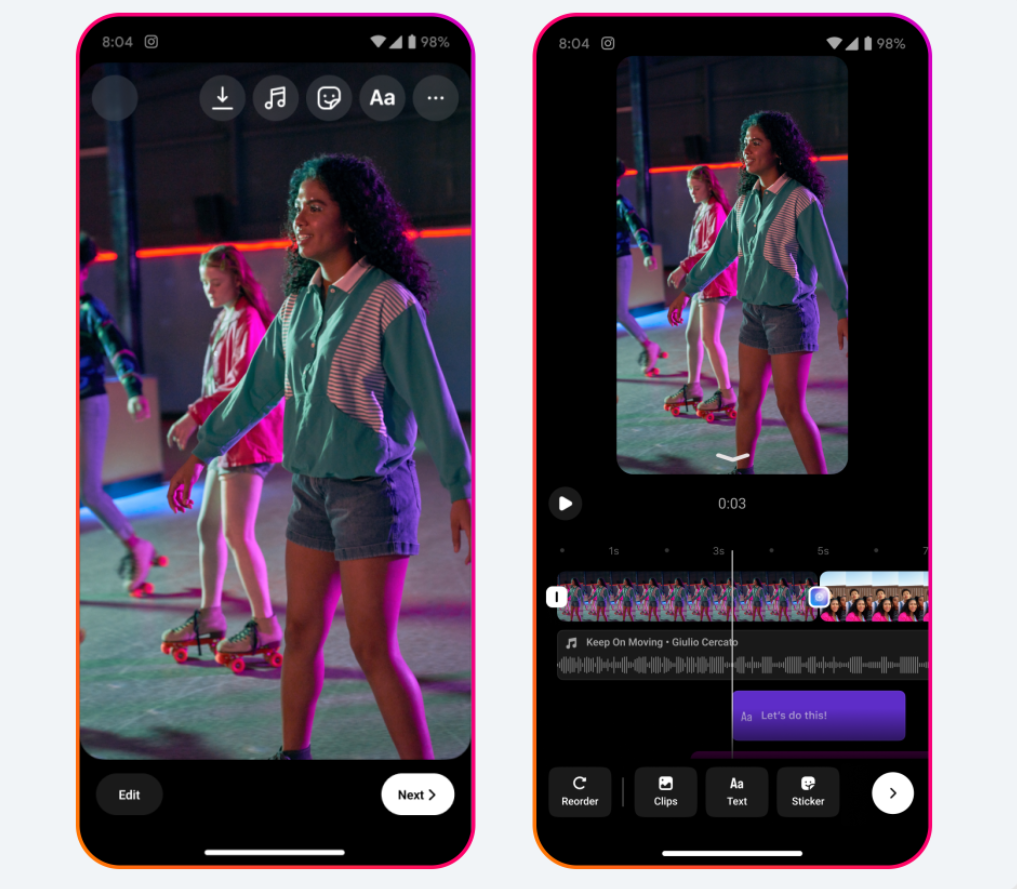 - обновленный редактор, в котором видео, аудио, наклейки и текст можно настраивать на единственном экране редактирования;
