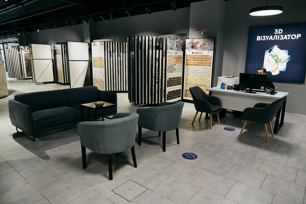 Дизайнерское пространство в формате open space, новый QR-помощник, уютные зоны отдыха и трендовый ассортимент плитки и сантехники — все это можно найти в новом магазине Агромат в Днепре, расположенном по адресу Набережная Победы, 68-а.