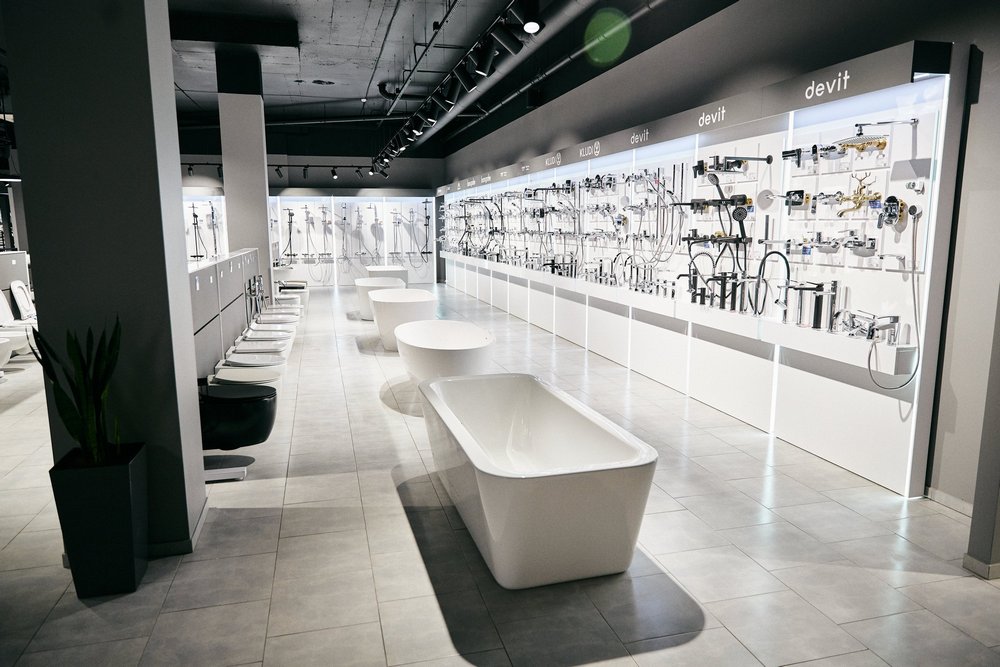 Также магазин представляет большой выбор инновационной сантехники: смесители, душевые кабины, ванны, современные подвесные унитазы, инсталляции с сенсорным управлением; дизайнерская мебель и аксессуары для ванной комнаты, зеркала и освещение от лучших мировых брендов и дизайнерских бюро. А еще сопутствующие материалы для обустройства ванной.