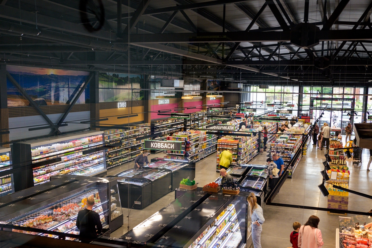 Супермаркет предлагает широкий ассортимент свежих продуктов, удовлетворяя самые взыскательные вкусы. Здесь можно найти вкусные овощи и фрукты, свежее мясо и рыбу, ароматную выпечку из собственной пекарни, заказать пиццу и приобрести рыбу из собственной коптильни.