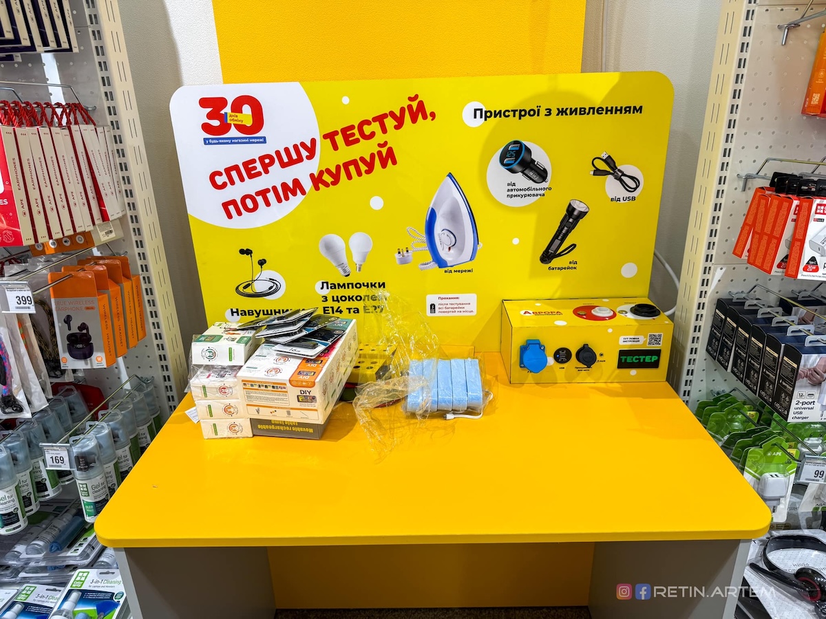 Очень практичной идеей для сети является зона тестирования электротоваров. Это позволяет постоянно увеличивать продажи этой категории.