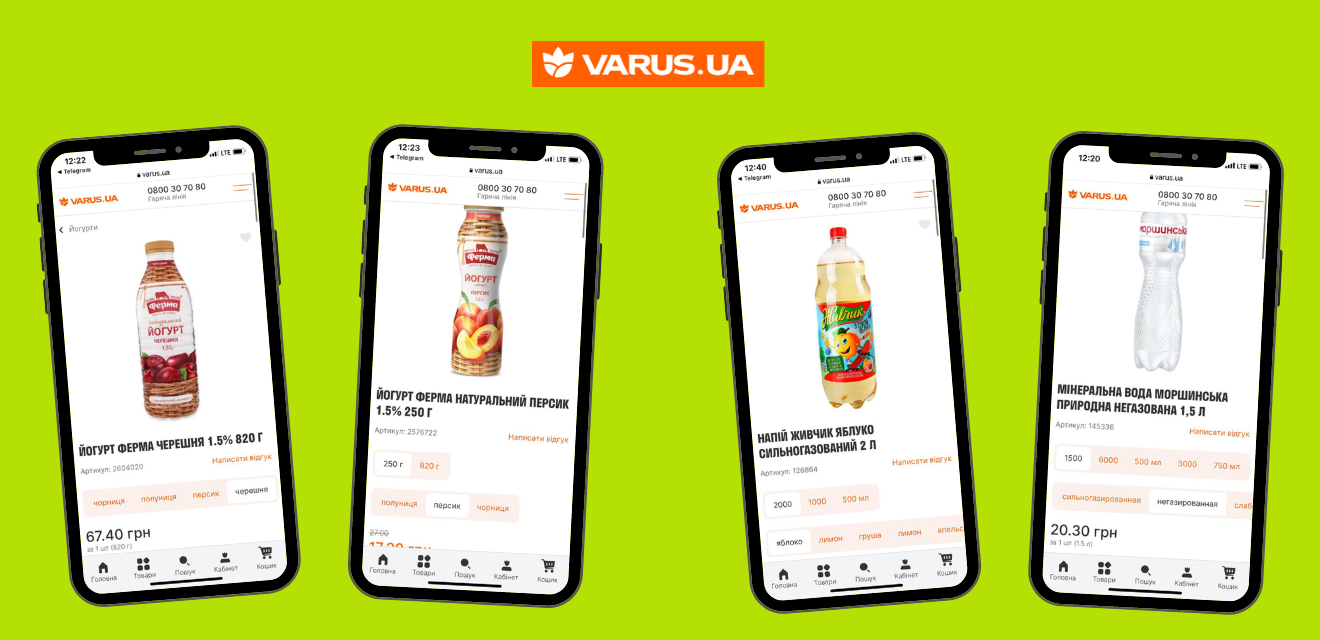 Справка. Varus – национальная сеть супермаркетов, представленная на рынке продуктового ритейла Украины компанией «Омега». Первый магазин сети открылся в 2003 году в Днепре, общее количество — 103 супермаркета в разных городах Украины. Сеть Varus работает в нескольких форматах: классические супермаркеты, магазины to go и сервис осознанных покупок varus.ua.