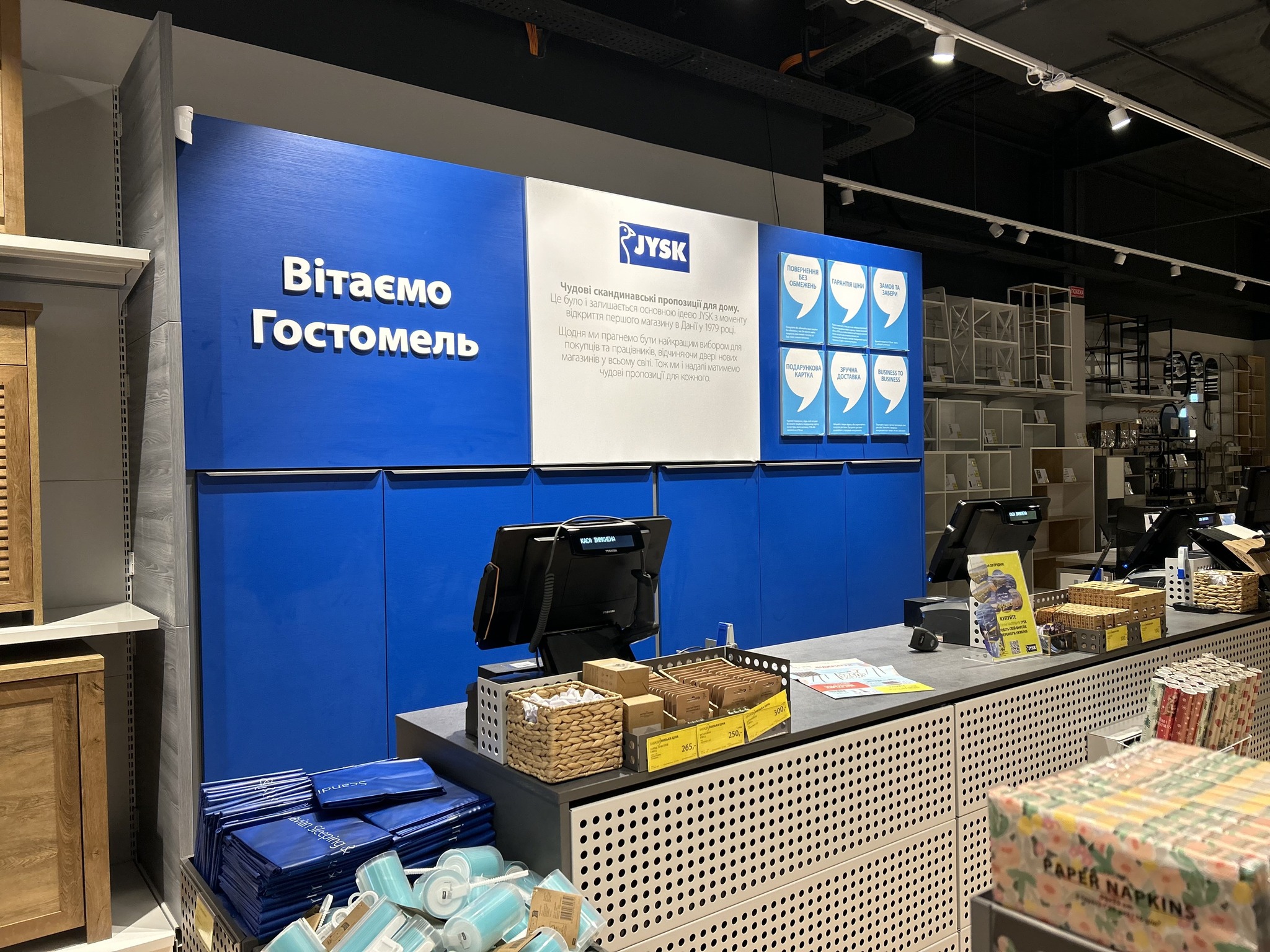 14 декабря 2023 года состоялось еще одно знаковое открытие для JYSK Украина. Свои двери для покупателей открыл восстановленный магазин в Гостомеле, в ТЦ Фора, который был полностью уничтожен в начале полномасштабного вторжения. Магазин начал работу в том же месте, где был до разрушения в начале войны, на втором этаже торгового центра на Гостомельском шоссе, 1.