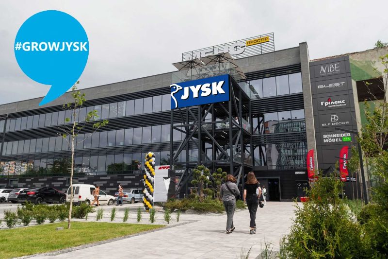 JYSK открыл новый магазин в Червонограде в Львовской област.и Торговая точка находится в ТРЦ Майдан по адресу ул. Героев Майдана, 10. Общая площадь магазина составляет более 1300 кв. м, торговая – около 1000 кв. м. Также сеть магазинов мебели и товаров для дома подписала договор аренды помещения в ТЦ Менс, расположенном в Ивано-Франковске. Магазин расположится на площади 1360 кв. м, его открытие намечено на декабрь 2022 года.