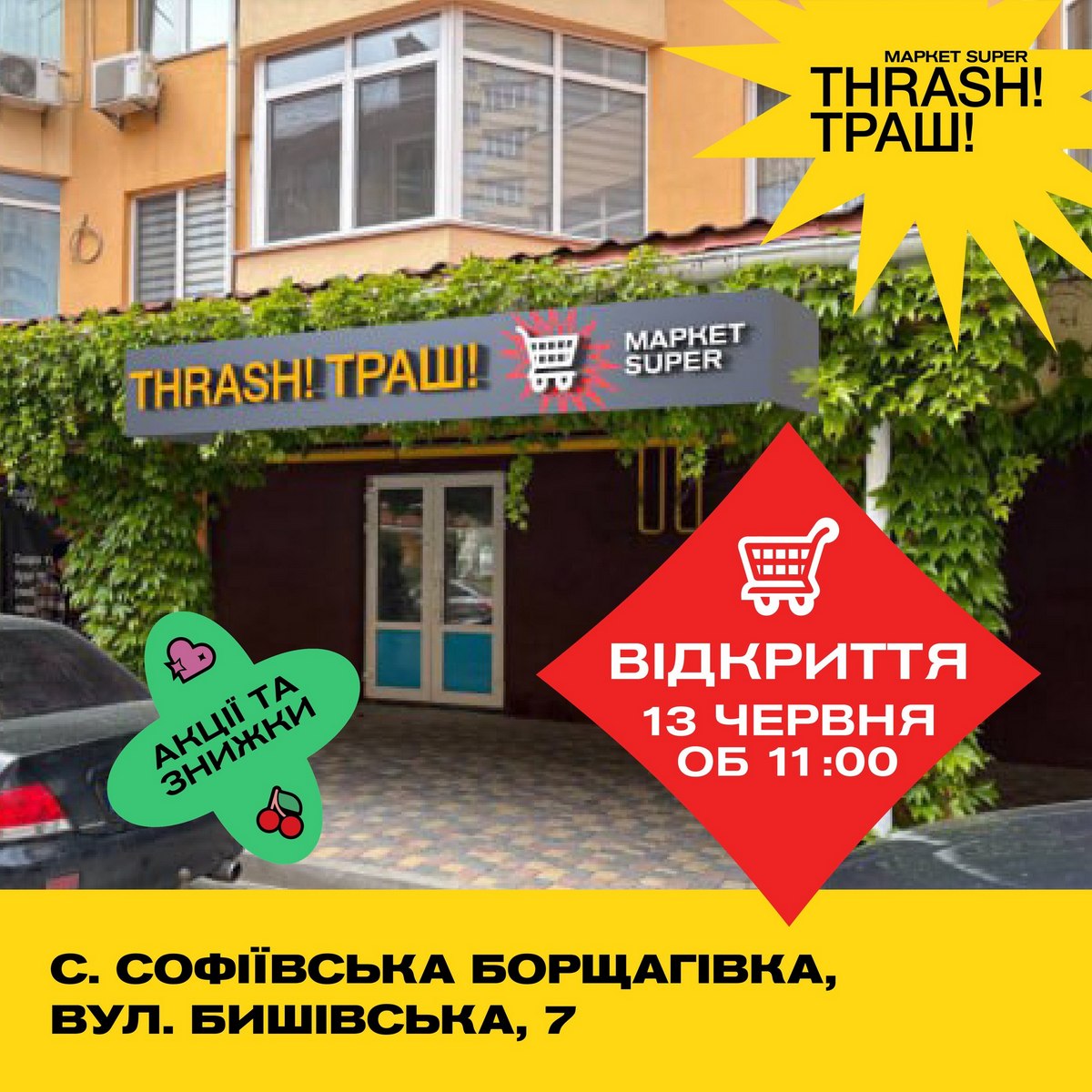 Сеть магазинов Thrash! Траш!, входящая в торгово-промышленную группу компаний Fozzy Group, продолжает расширение в столичном регионе. Так, 13 июня открылись магазины в селе Требухов (ул. Броварская, 2 А) под Киевом и в Софиевской Борщаговке, по ул. Бышевская, 7. А в начале месяца открыл свои двери магазин в Броварах по адресу ул. Героев УПА, 3
