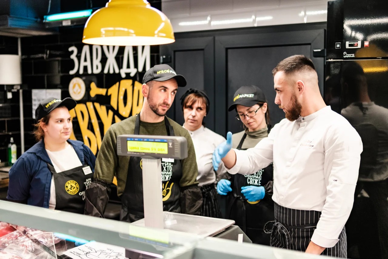 На базе кулинарного центра МХП начал работу М’ясомаркет для обучения специалистов, которые в будущем будут работать мясными сомелье в сети. Он является точной копией реального магазина, помогающего проработать все этапы работы с продуктом – от охлажденного мяса до готового блюда.