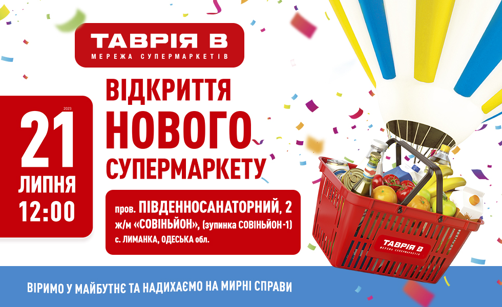 Продовольственный ритейлер Таврія В, работающий в южном регионе (в том числе в Одессе, Одесской области, Николаеве и Херсоне), открыл 21 июля новый супермаркет в поселке Лиманка на территории ЖМ “Совиньон” по адресу переулок Южносанаторный, 2 (Одесская обл.). Это уже третий супермаркет, открытый этим летом. В настоящее время ритейлер, развивающий три основных направления сети – гипермаркеты, супермаркеты и магазины “шаговой доступности” – насчитывает 105 торговых точек.