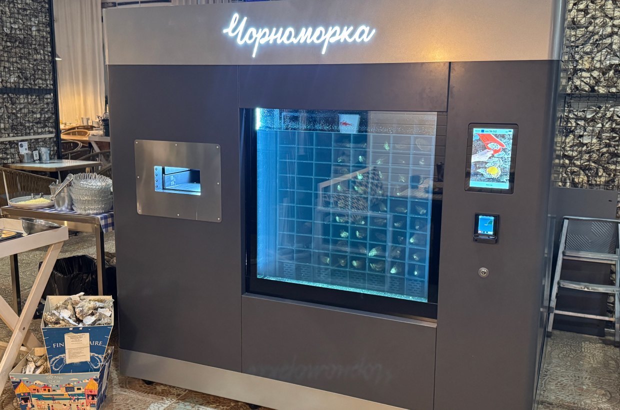 Первый устричный автомат разработало украинское предприятие Avangard. Устройство вмещает до 240 живых устриц, имеет сенсорный экран для выбора и оплаты, а также механизм выдачи устрицы из воды.