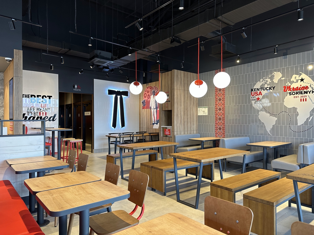 Дизайн заведения также создан с учетом потребностей и стиля жизни жителей современного города. Интерьер оформлен в актуальной стилистике KFC: светлые открытые просторы, натуральные материалы, эргономичная мебель, зоны отдыха и инновационная система самообслуживания, которая позволяет сделать заказ быстро и удобно.