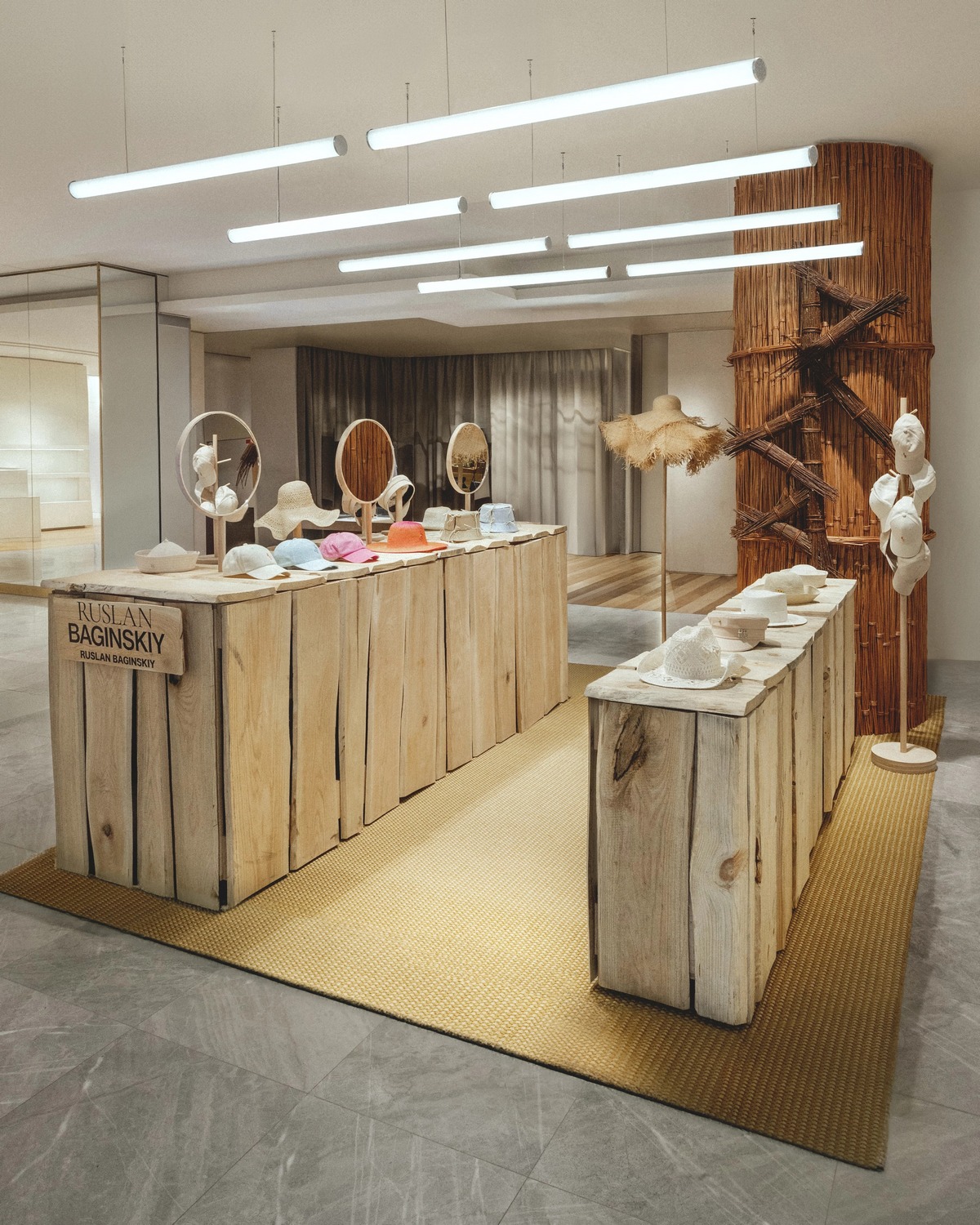 Руслан Багинский, украинский дизайнер и основатель одноименного бренда, открыл pop-up точку в Galeries Lafayette в Париже. Атмосферный, теплый по настроению корнер RB создан из украинских материалов – натуральной необработанной древесины, ротанга и соломы. С 17 мая по 30 июня посетители престижной галереи для шопинга могли ознакомиться с коллекцией головных уборов — от бейсболок до широкополых шляп на весну-лето 2024.