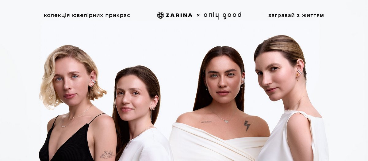 Как пишет издание WoMo, известные украинские бренды Only Good и ювелирный дом Zarina создали общую коллекцию украшений, лицами которой стали бренд-консультант Настя Иваничева, редактор и писательница Ирина Выговская, архитектор Ия Турабелидзе и соучредитель бренда Gunia Project Мария Гаврилюк. В коллекцию вошли флагман — колье Kyiv с картой столицы в двух вариантах (литая форма и контур), колье с камнями, моносерьги, серьги, кольца и браслет. Украшения выполнены из серебра.