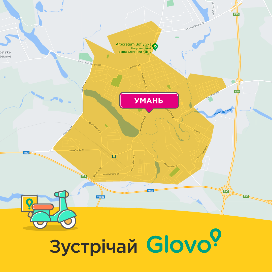 С 23 июня Glovo начал работу в Умани и представлен теперь в 33-х городах Украины. В зону покрытия сервиса вошла территория города, которая простирается от улицы Родниковая на севере до улицы Кармелюка на юге и находится между улицей Заводская на западе и улицей Освободителей на востоке. Сервис Glovo будет работать в городе ежедневно с 10:00 до 22:00.