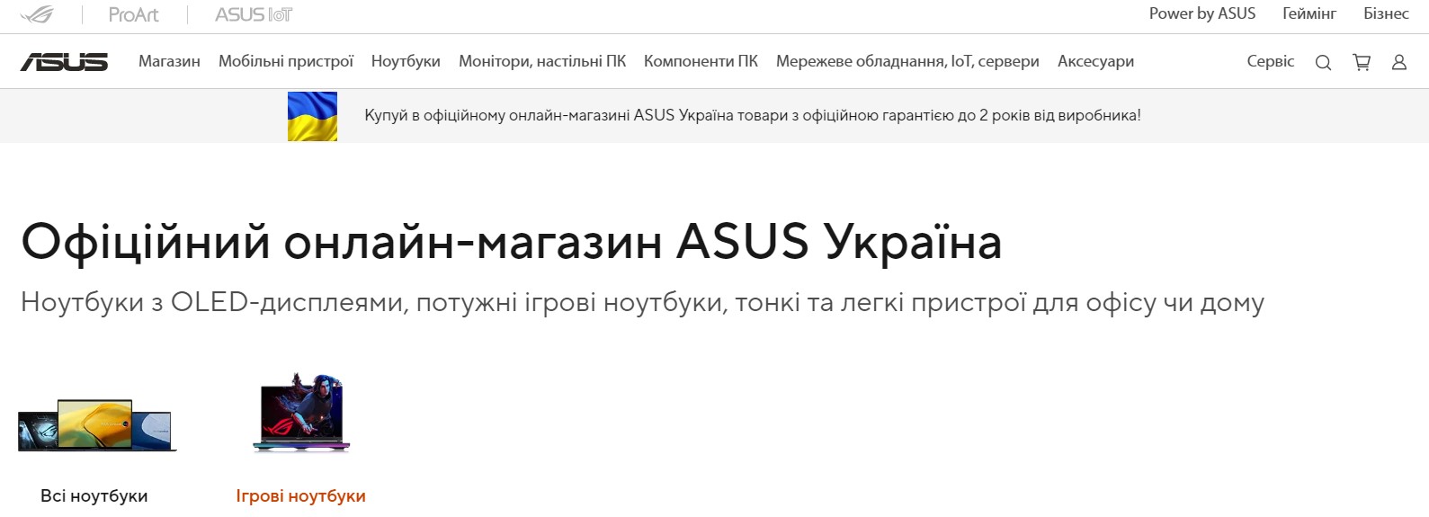 Производитель электроники Asus с 16 мая запустил в Украине официальный иИнтернет-магазин. Как сообщает Экономическая правда со ссылкой на пресс-службу компании, сейчас в магазине предлагаются только ноутбуки ASUS и ROG, однако ассортимент доступных категорий товаров будет расширяться. Отмечается, что интернет-магазин обслуживает покупателей из любых уголков Украины, за исключением временно оккупированных территорий. Доставка товаров осуществляется с помощью услуг Новая почта в течение 1-3 дней в зависимости от региона.