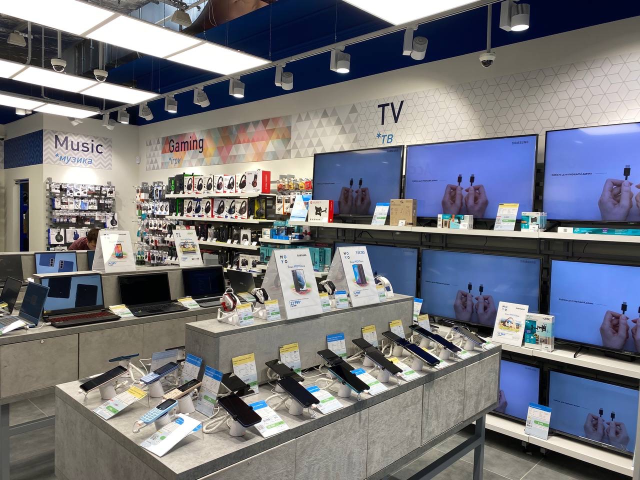 Также ритейлер обновил торговую точку в ТРЦ King Cross Leopolis. Чтобы спроектировать магазин по актуальной общепринятой концепции «белого хаба», в процессе реновации торговую площадь сократили до 1400 кв. м. Магазин стал более светлым, более современным и хорошо просматривается с любой точки входной зоны. Обустроена кредитная зона для оформления покупок в кредит от банков-партнеров и лаундж-пространство.