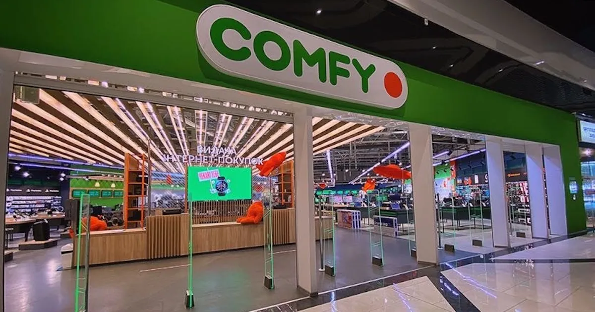 Расположенный в ТРЦ магазин Comfy также получил повреждения, но теперь его восстановили и открыли для посещения покупателями.