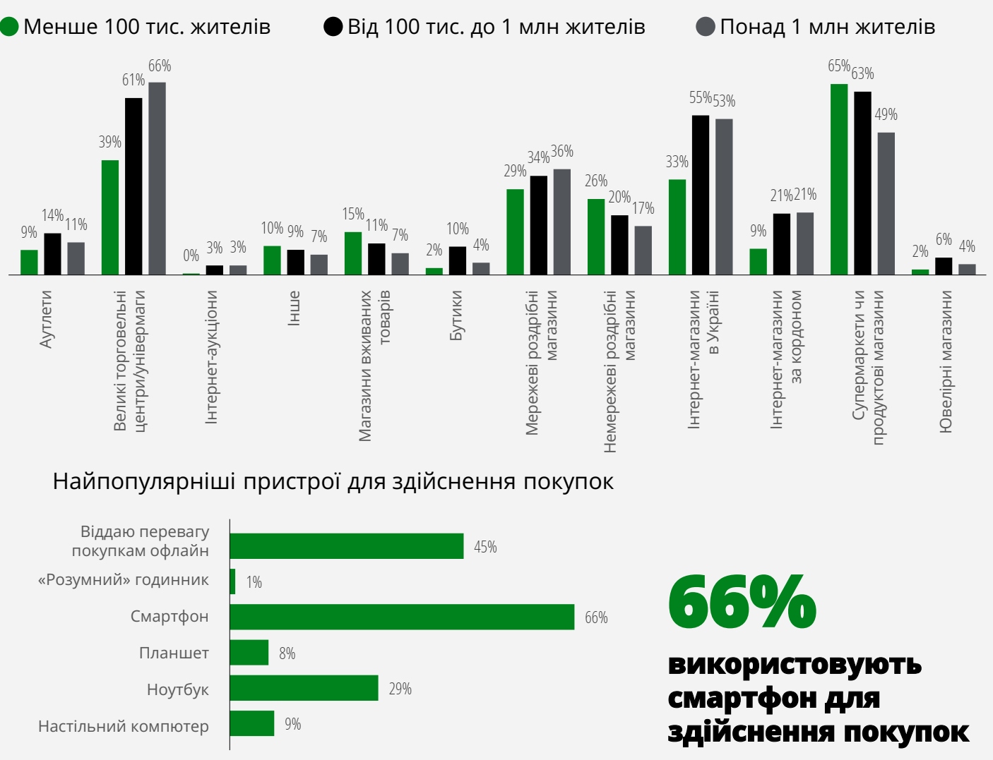 Чаще всего в Украине совершают покупки женщины в возрасте 28–42 лет, работающие в коммерческой или бюджетной организации. Живут такие среднестатистические потребители в Киеве или в Киевской области, в центре или на западе Украины.