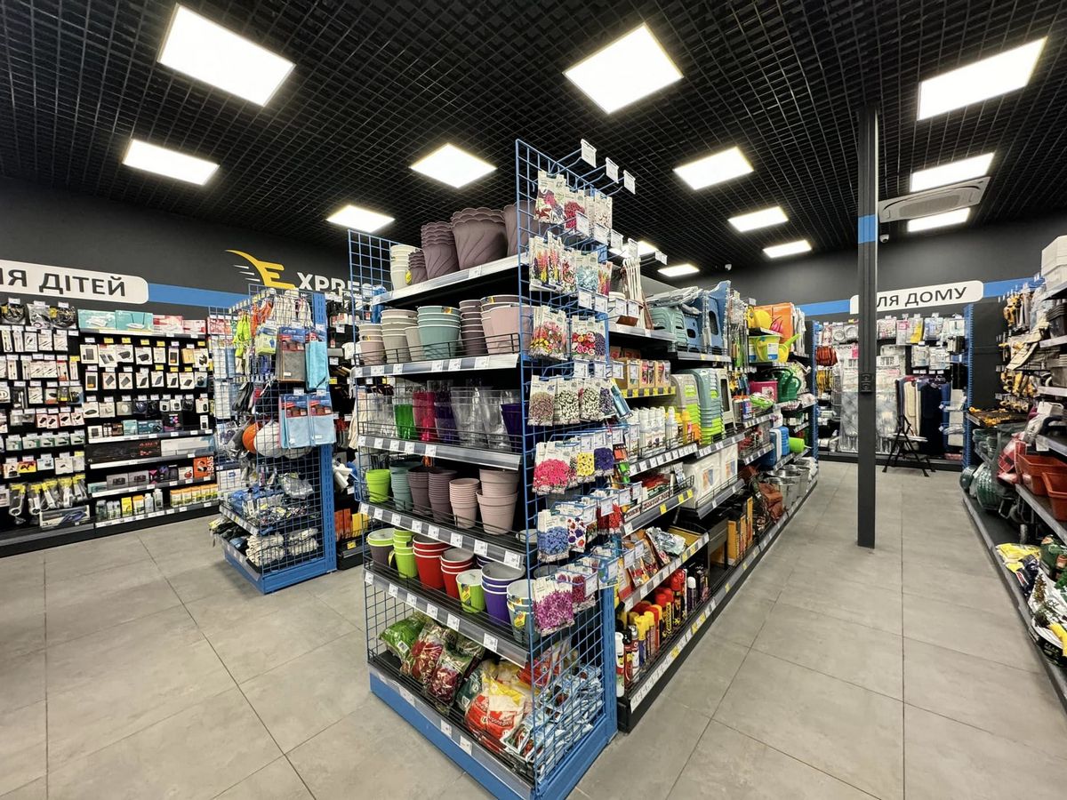 Сам ритейлер позиционирует новую сеть в качестве супермаркета возле дома, где можно заказать дополнительно все товары, представленные в ассортименте Епіцентр, а также получить все покупки из маркетплейса. Для удовлетворения возможных насущных потребностей покупателей здесь представлена довольно пестрая ассортиментная палитра. В частности, тут можно купить бытовую химию, автотовары, зоотовары, кухонные товары и посуду, текстиль, декоративные товары для дома и строительные инструменты, в том числе и электроинструмент. Конечно, значительную часть «классического» ассортимента DIY-ритейлеров здесь не найти: таких товаров как сантехника, гвозди, обои и т.д. Зато есть секции товаров для детей (в том числе детское питание), а также канцтовары, садоводческий инвентарь, немного безрецептурного аптечного ассортимента и товары для спорта. Есть даже аксессуары для электроники и мелкая бытовая техника.