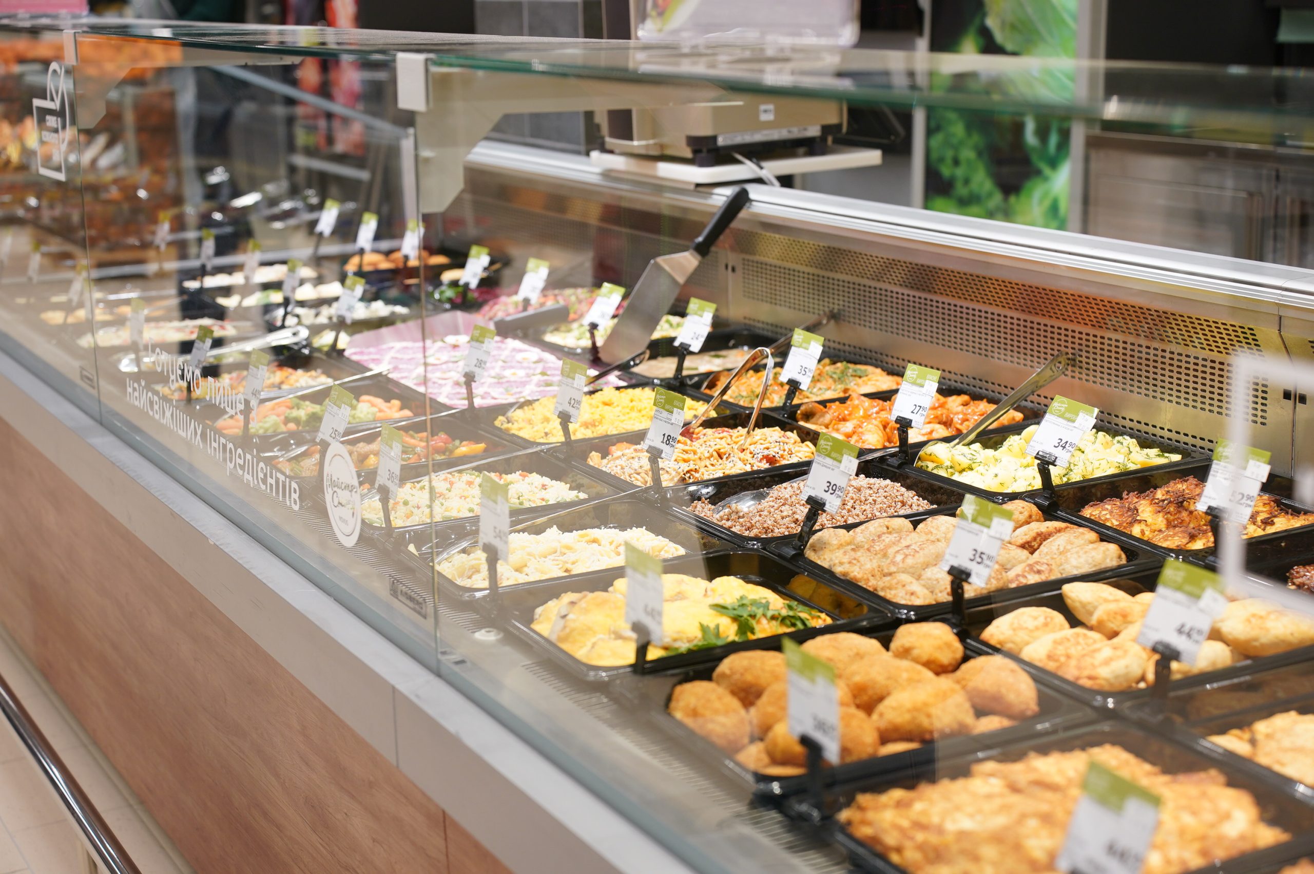 Расширенная зона с готовыми блюдами собственного производства – это настоящая находка для тех, кто ценит время и качество. Салаты, гарниры, основные блюда и закуски предлагаются как для повседневного питания, так и для особых вечеров.