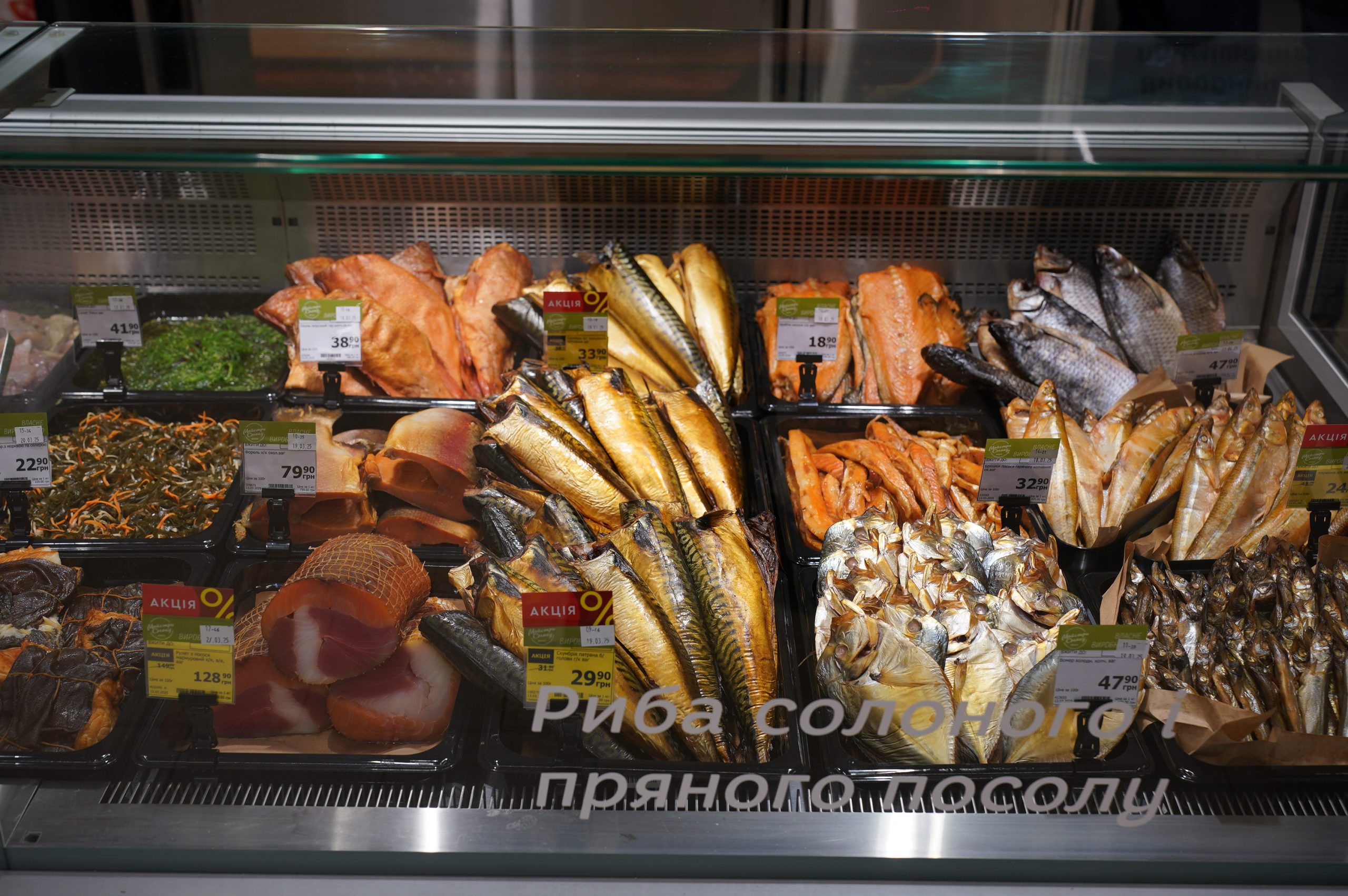 Отличным дополнением к ассортименту является зона собственного копчения на ольховых опилках, поэтому в супермаркете есть большой выбор копченой продукции.