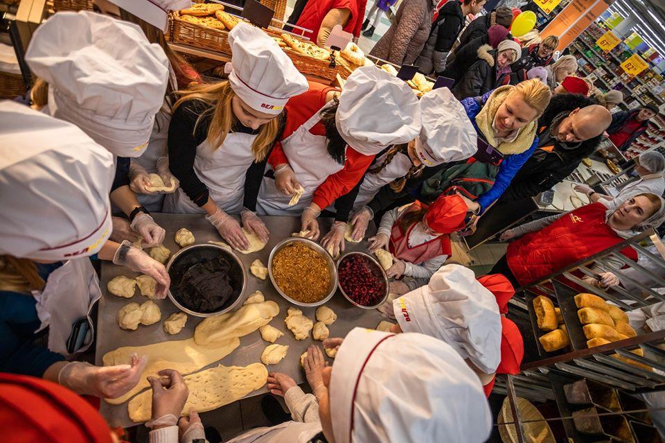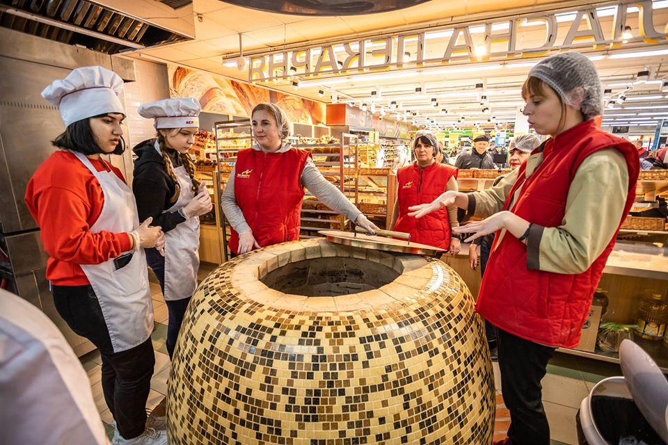 Здесь также работает собственная мини-пекарня с современным немецким оборудованием и тандыр. Теперь каждое утро покупатели смогут приобрести свежие хлебобулочные изделия. Для детей в день открытия провели экскурсию по пекарне и мастер-класс по изготовлению хлеба. Особый интерес у первых посетителей также вызвала собственная пиццерия, открытая в Велмарт.