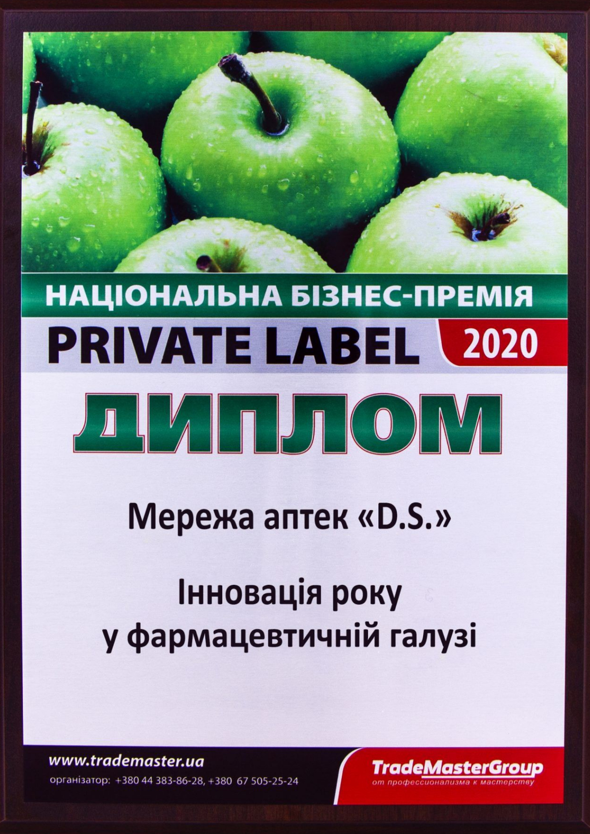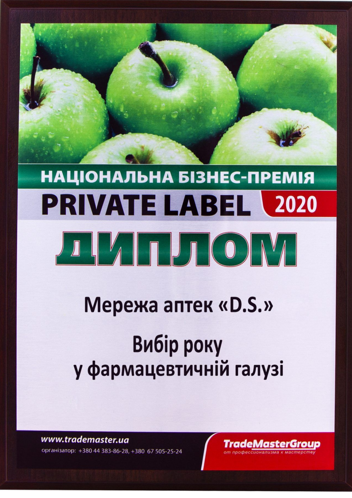 На XII международной бизнес-конференции Private Label 2020: «Ритейлер и производитель – курс на развитие» сеть аптек D.S. (ООО Маркет Универсал) получила награды сразу в двух номинациях: «Выбор года в фармацевтической отрасли» и «Инновация года в фармацевтической отрасли»