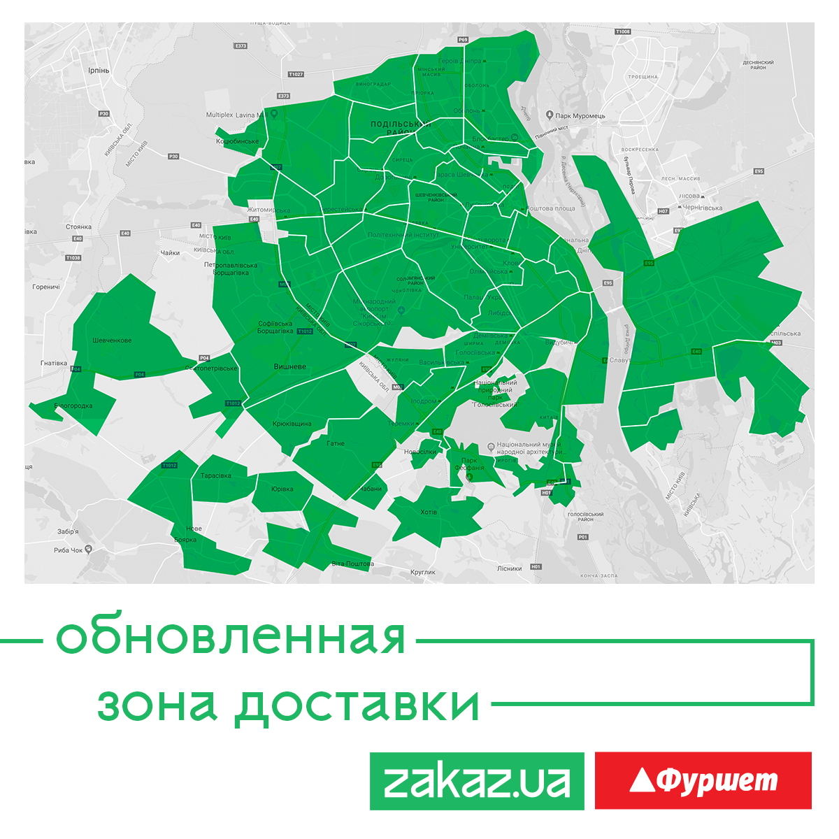 Zakaz.ua теперь доставляет еще из двух супермаркетов Фуршет: на Нивках (пр-т Победы 94/1) и со Столичного Шоссе (Столичное шоссе, 103).