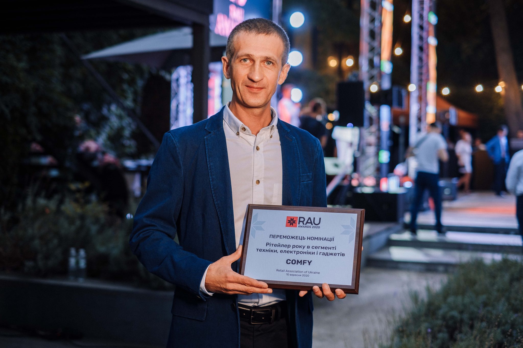 10 сентября в Киеве в open air Villa Verde прошла IV ежегодная церемония награждения лучших ритейлеров и девелоперов Украины — RAU Awards 2020. Среди победителей сеть магазинов Comfy, которая победила сразу в двух номинациях – “Ритейлер года в сегменте техники, электроники и гаджетов” и “E-commerce-ритейлер года в сегменте техники, электроники и гаджетов”.
