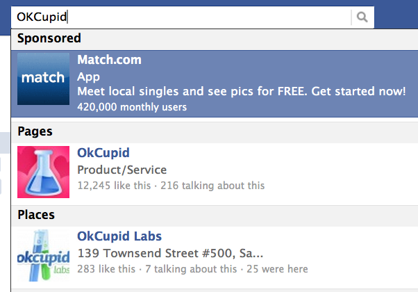 Реклама в результатах поиска Facebook