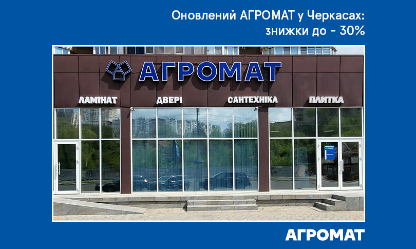 29 апреля национальная сеть магазинов плитки, сантехники и напольных покрытий Агромат открыла обновленный магазин в городе Черкассы. Современный магазин площадью 700 кв. м с широким ассортиментом товаров для уютного дома находится по адресу: ул. Владимира Великого, 23. Напомним, основанная в 1993 году сеть насчитывает более 30 магазинов в 18 городах Украины.