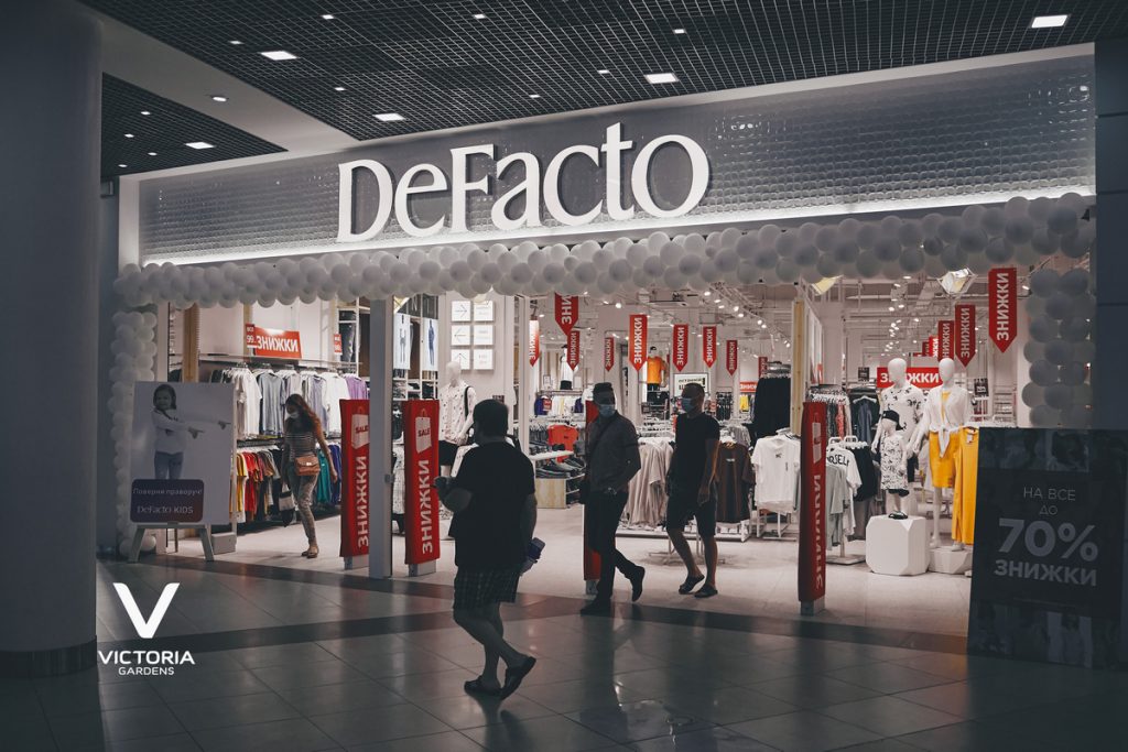 На первом этаже крупнейшего торгово-развлекательного комплекса Западной Украины Victoria Gardens открылся магазин DeFacto площадью 1262 кв. м. В ассортименте продукции бренда можно найти все, что нужно – от нижнего белья до верхней одежды, для широкой возрастной аудитории взрослых и детей.