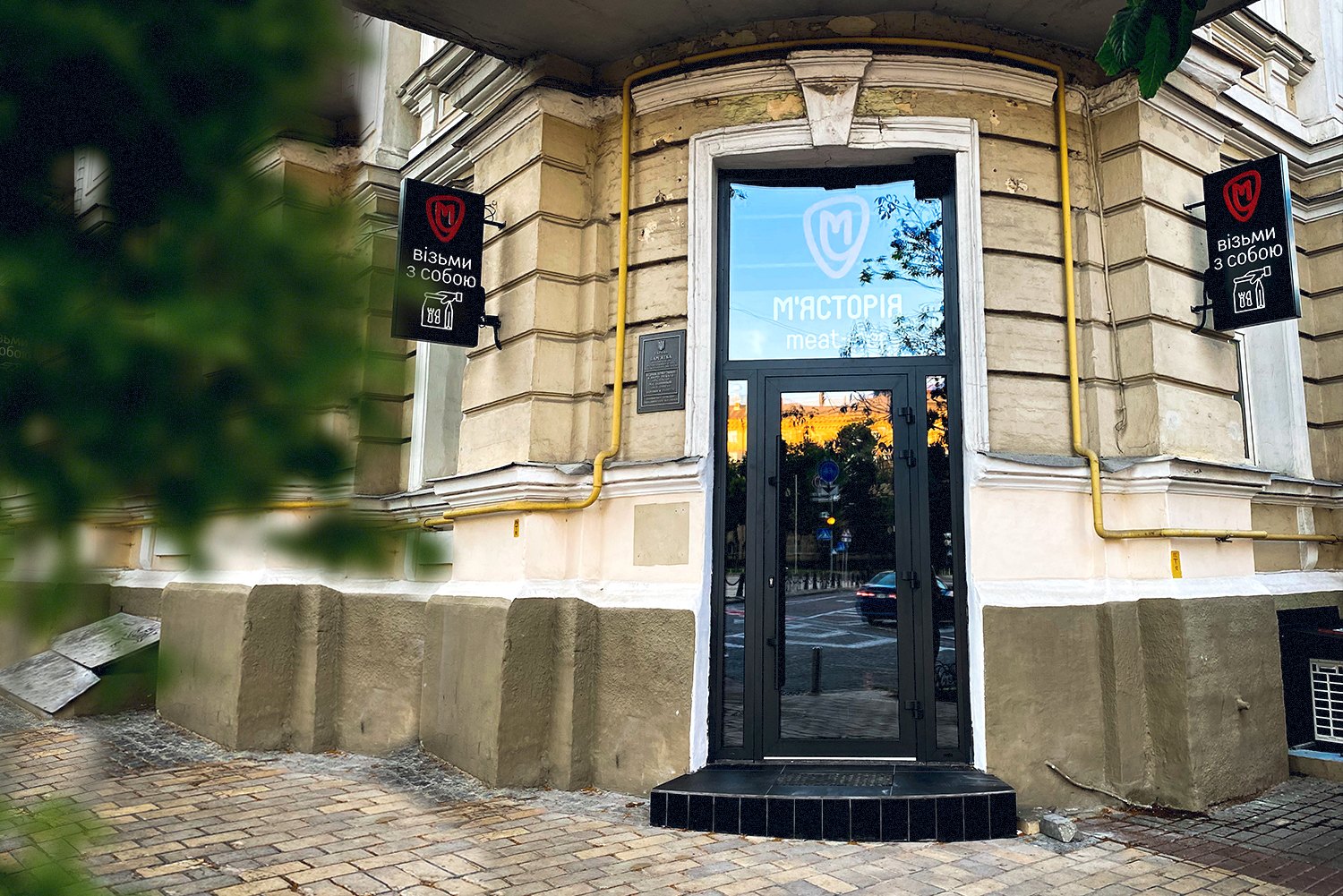 В июле на Софийской площади в Киеве открылась первая “Мʼясторія” в формате Meat Bar. Заведение расположено на улице Владимирской, на месте бывшего кафе BaoBab. Формат подходит для тех, кто хочет взять еду на вынос или быстро съесть на месте. Здесь нет официатов, готовые блюда и напитки можно брать с витрин и полок.
