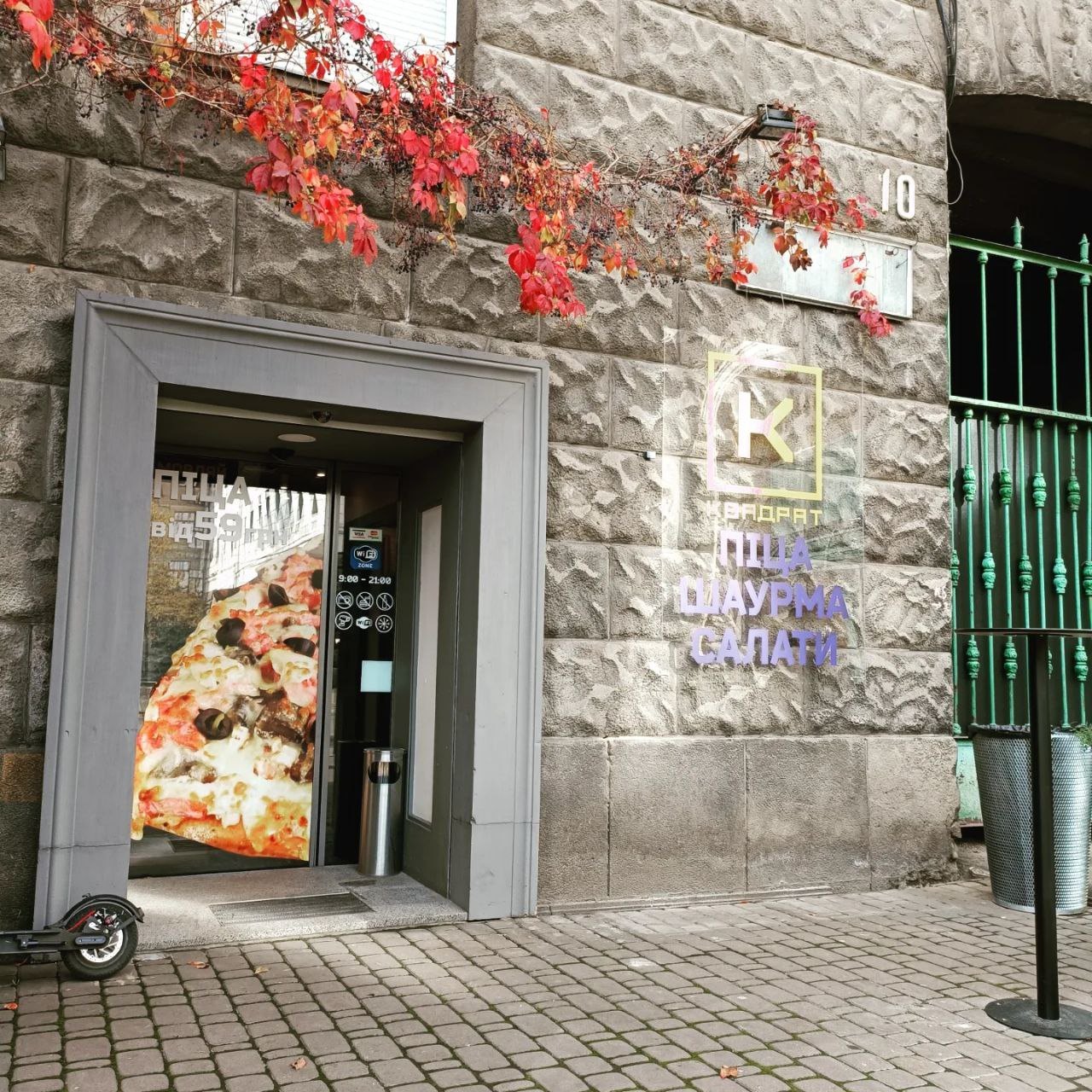Основные блюда – квадратная пицца на пышном тесте, которую готовят за шесть минут, окрошка и харьковская шаурма. Средний вес пиццы в заведении – 580 грамм, а цена 119 гривен.