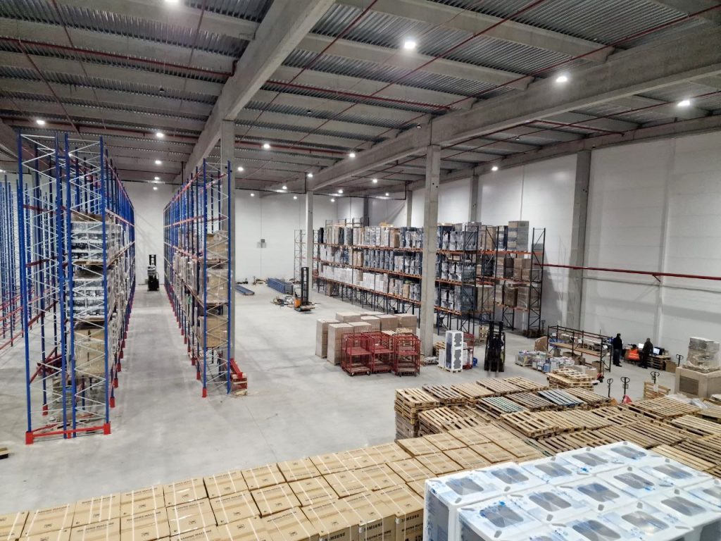 Работы по строительству склада начали в июне и уже к концу сентября объект был готов к эксплуатации. Это складские помещения класса “А” с 33 рампами, что значительно повышает пропускную способность, увеличивает количество поставщиков для приема и транспорта для отгрузки большего объема техники.