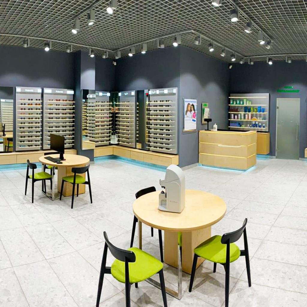В магазине представлен широкий ассортимент солнцезащитных очков мировых и украинских брендов: Polaroid, Ray-Ban, Police, Guess, Vogue, Marc Jacobs, Carrera, Furla, Prada, Versace, OGA, Dolce&Gabbana, Casta, Sunderson, Luxoptica. В оборудованном по последним технологиям кабинете врача можно проверить зрение и воспользоваться услугой подбора очков, контактных линз и средств ухода за ними, проводится обучение по правильному пользованию контактными линзами.