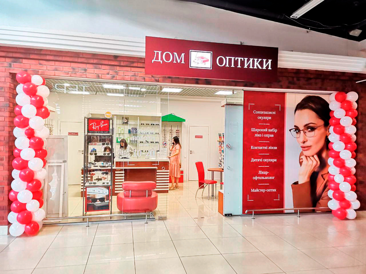 В магазине представлен широкий ассортимент солнцезащитных очков мировых и украинских брендов: Polaroid, Ray-Ban, Police, Guess, Vogue, Marc Jacobs, Carrera, Furla, Prada, Versace, OGA, Dolce&Gabbana, Casta, Sunderson, Luxoptica. В оборудованном по последним технологиям кабинете врача можно проверить зрение и воспользоваться услугой подбора очков, контактных линз и средств ухода за ними, проводится обучение по правильному пользованию контактными линзами.