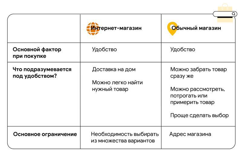 Покупатели говорят, что главное для них при выборе магазина — удобство. Но в чем оно выражается? Это всегда зависит от конкретной ситуации и потребителя. Если он идет в офлайн-магазин, то ключевым моментом может стать параметр «рядом». Однако в онлайн-мире удобство может означать «я быстро вспомню сайт любимого ритейлера и легко найду там все, что мне нужно».
