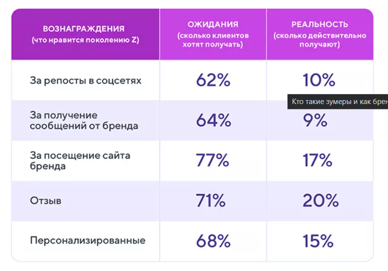 Поколению Z также не хватает персонализированных вознаграждений, основанных на их опыте взаимодействия с брендом.
