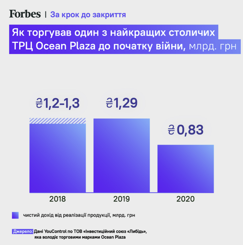 “Мы поддерживаем любое решение государства относительно 67% акций торгового центра, оказавшихся во владении российских акционеров”, – ответили на запрос Forbes в UDP. По словам компании, до войны в ТРЦ работало 5000 предпринимателей и наемных сотрудников. По оценке Forbes, стоимость Ocean Plaza – $180 млн.