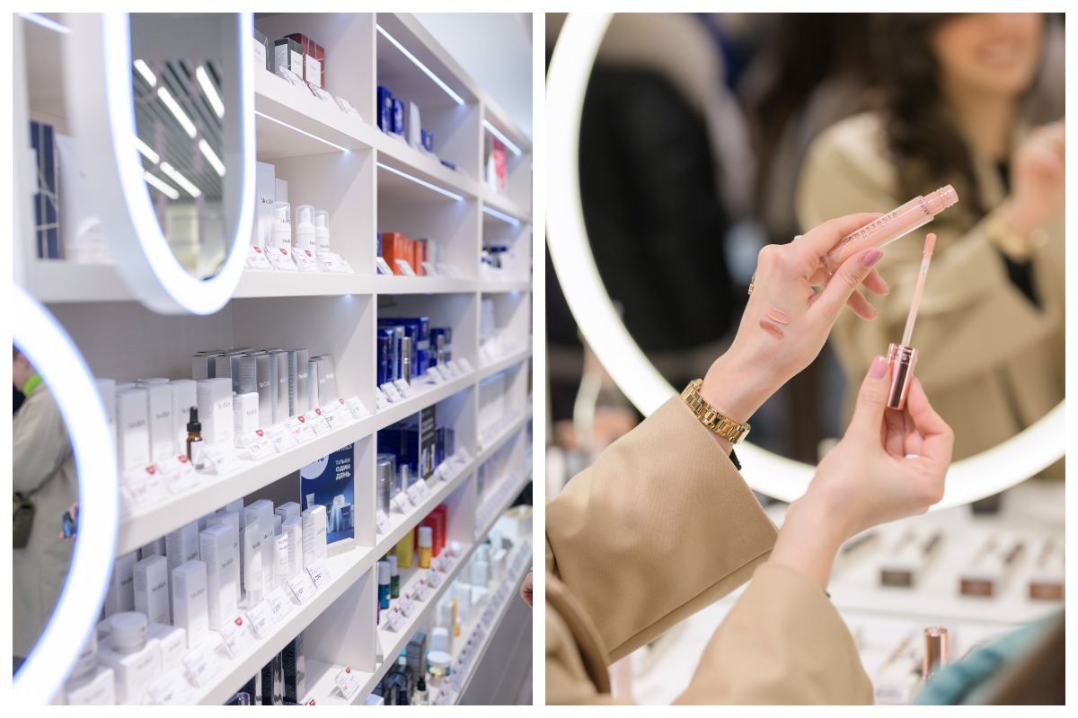 Площадь магазина составляет 100 кв. м. Ассортимент несколько отличается от имеющегося на сайте. Например, у нас есть бренды, которые представлены только в автономном режиме: премиальный Sisley, Medik8 и т.д. Дизайн для нас делали знакомые дизайнеры, работавшие над оформлением нашего офиса. И я считаю, что они воплотили то, что мы хотели.