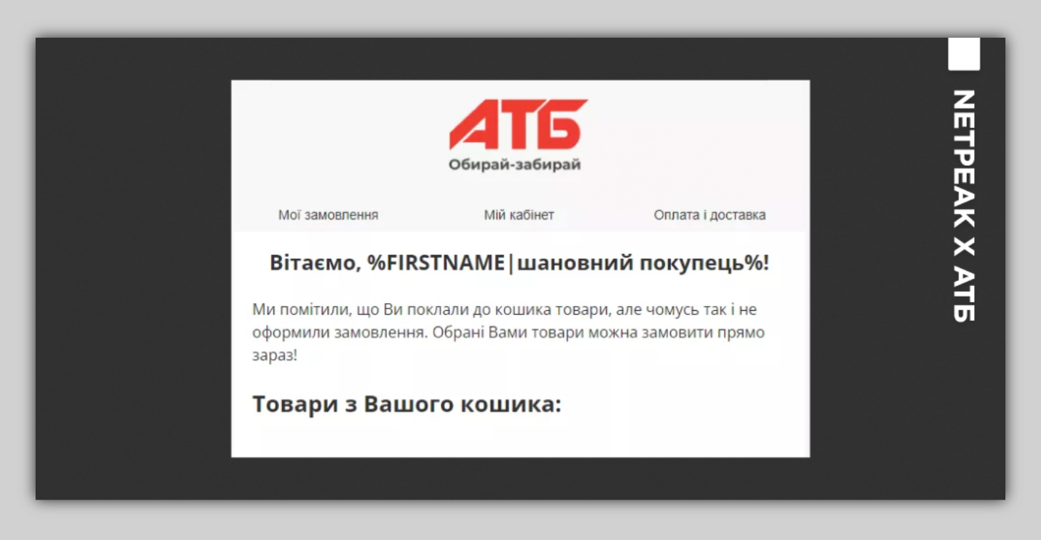 После аудита онлайн-каналов коммуникаций компании команда Netpeak Ukraine стала партнером для сети АТБ в построении системного direct-маркетинга для увеличения количества продаж с канала email.