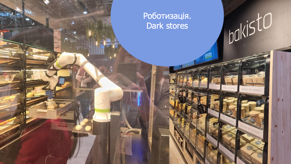 Роботизация. Dark stores. Роботы на международных выставках всегда были горячей темой. Посетителям всегда было интересно как роботы могут заменить людей на первой линии, тем более, что всегда есть проблема с поиском кадров, их обучением и мотивированием. Но еще пять лет назад предложение роботов было значительно больше.