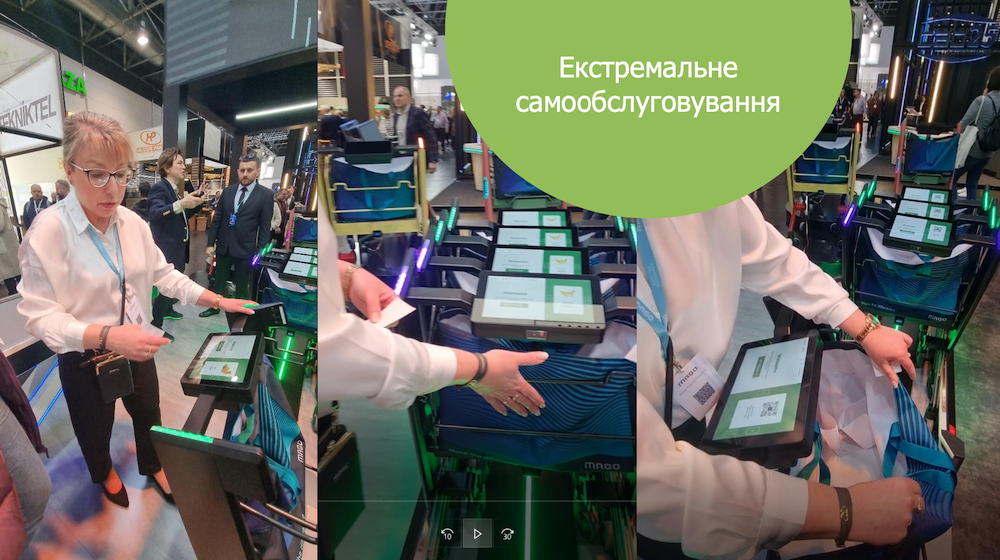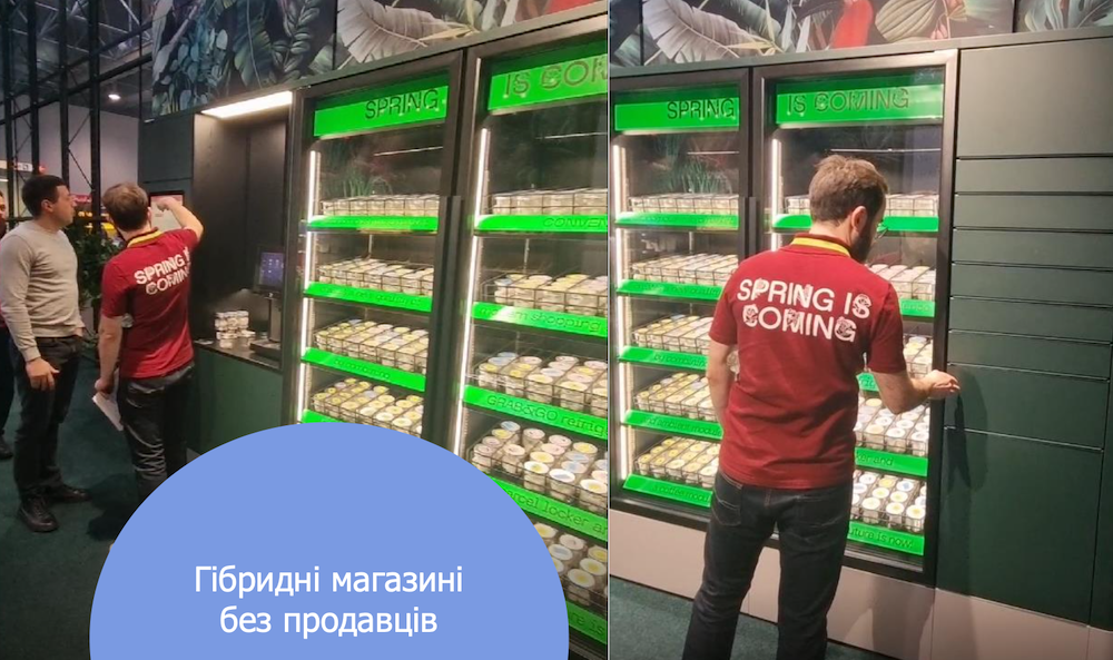 Предыдущий тренд поддерживается также тенденцией развития гибридных магазинов без продавцов. Этот тренд появился около пяти лет назад с появления маленьких модульных магазинов у дома без продавцов. На выставке было достаточно много различных предложений вендинговых гибридных магазинов. В частности, наш украинский бренд ModernExpo представил свою разработку вендингового магазина в комплексе с автоматической кофеваркой и почтоматом с передней загрузкой, которое поставщики могут сделать самостоятельно без дополнительного привлечения персонала.