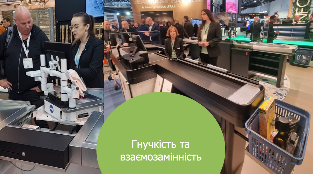 Сейчас также все более распространенным становится тренд гибкости и взаимозаменяемости, когда кассовые узлы с кассирами в случае необходимости могут превращаться в кассу самообслуживания, где покупатель может расплатиться за товар карточкой, не ожидая в очереди на кассе с кассиром.