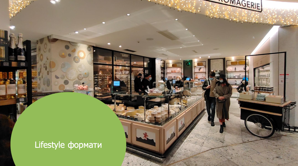 Также сейчас все популярнее становятся lifestyle-форматы торговых точек. Эта тенденция распространяется в основном в среднем сегменте потребления, в котором магазины становятся не просто местом поп-купки, но и местом наслаждения. В таких супермаркетах появляются собственные зоны с ресторанами, барами и винотеками. В таких местах люди вместо одного часа проводят четыре, да еще и вместе с друзьями. В Украине в этом направлении движутся, например, Сильпо и goodwine.